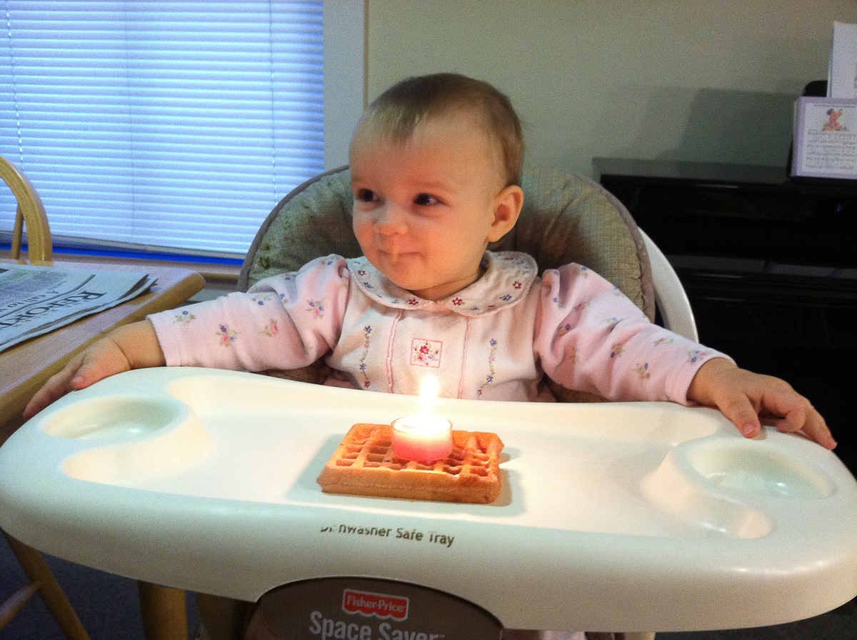 We ate birthday pancakes and she wasn't too sure about the candle, but was reassured when we sang to her. She liked that!